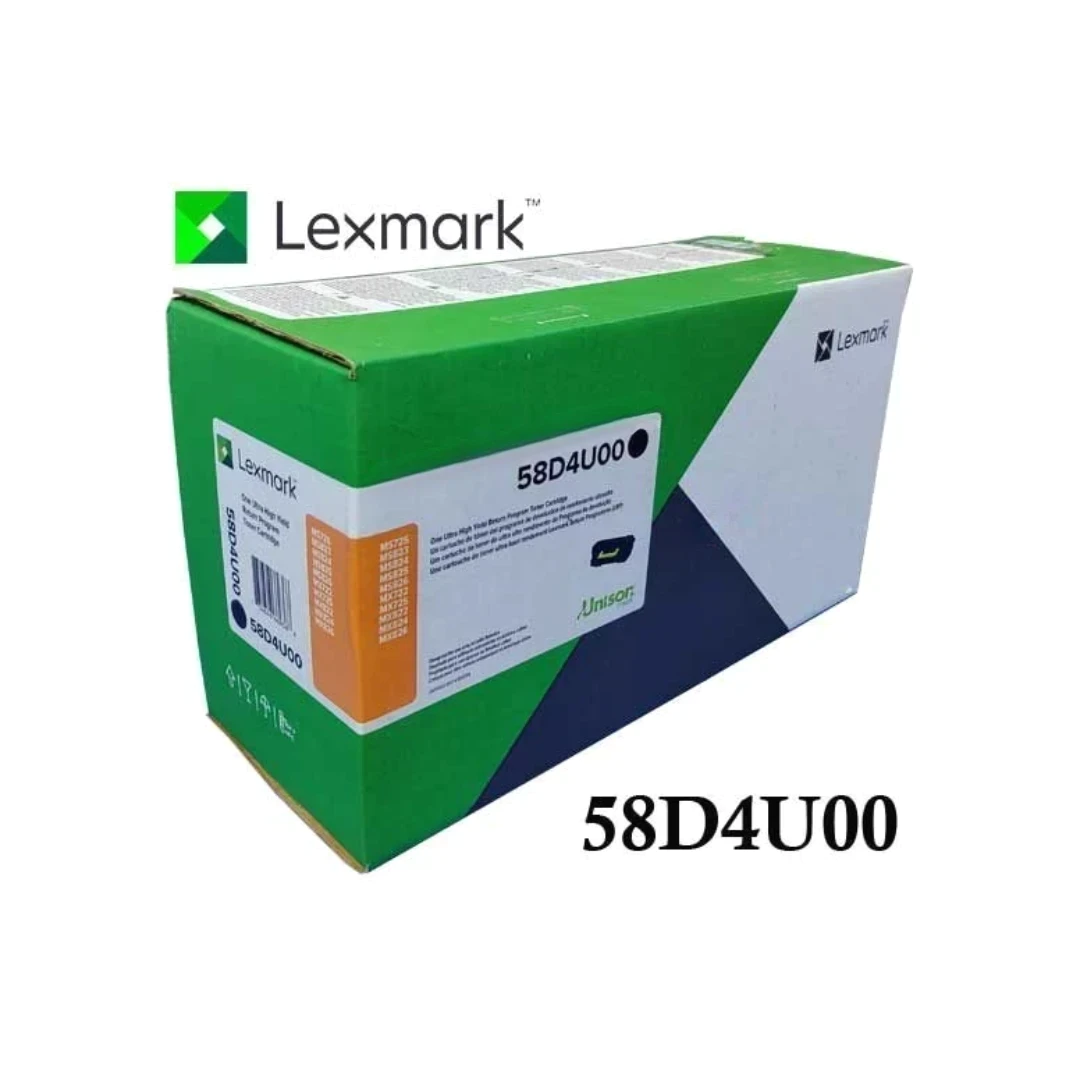 Cartucho de Toner Lexmark 58D4U00 original de color Negro con rendimiento de 55,000 páginas de impresión.